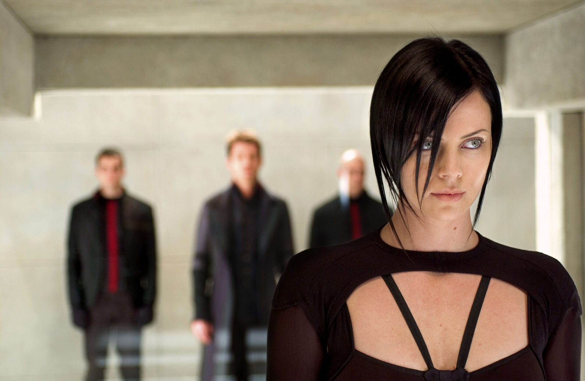Charlize Theron (Mad Max Fury Road, Atomic Blonde) spielt die Agentin Æon Flux. Als beste Agentin der Monicans hat sie keine Anpassungen durchführen lassen, um ihre Aufgaben besser zu erfüllen. Durch ihr Zögern beim Attentat auf Trevor Goodchild hat sie die Möglichkeit, ihre eigene Vergangenheit zu ergründen, und erhält die Mittel, die Menschheit auf neue Wege zu führen.